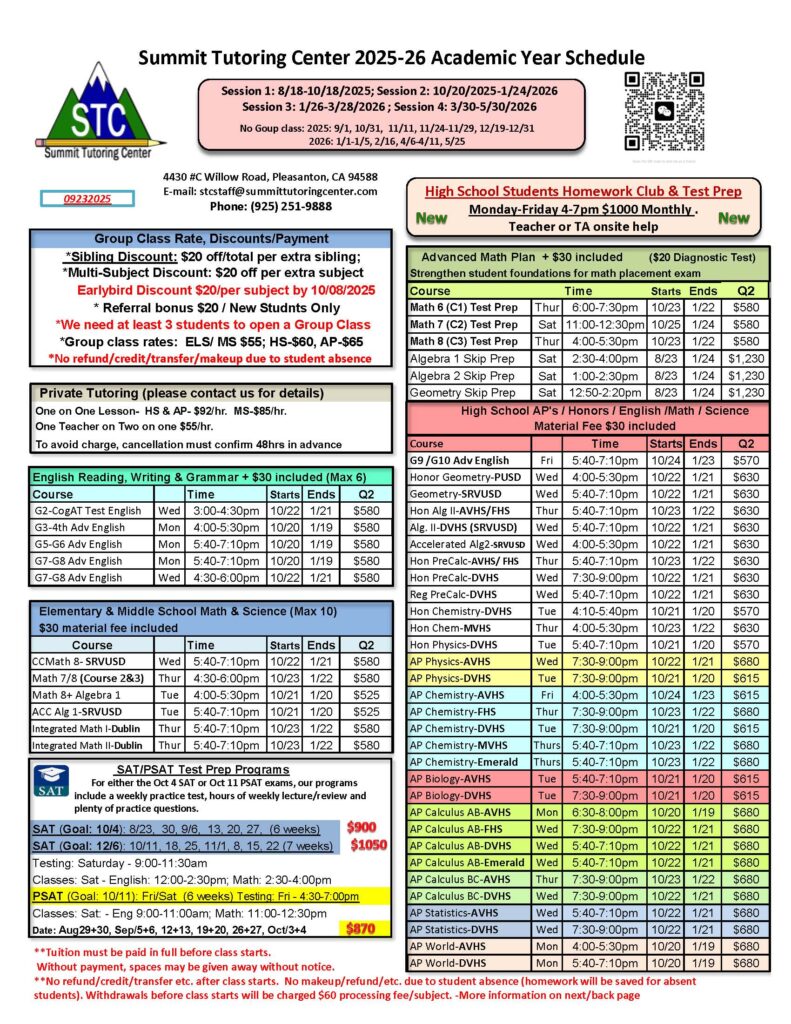 We are Summit Tutoring Center, proudly providing service to the Tri-Valley School Districts and more for over 15 years.